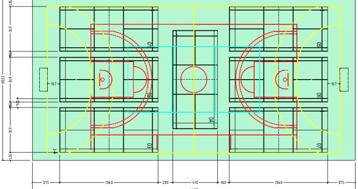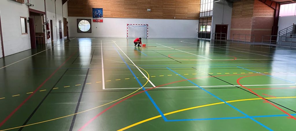 Marquage au sol sportif : les dimensions des terrains pour un gymnase multisport